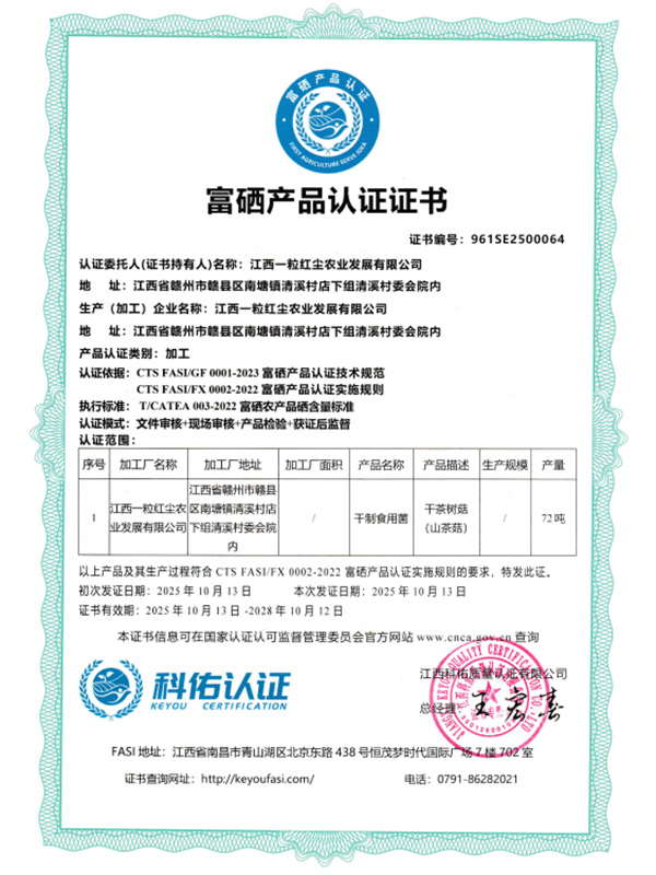 富硒產(chǎn)品認證證書